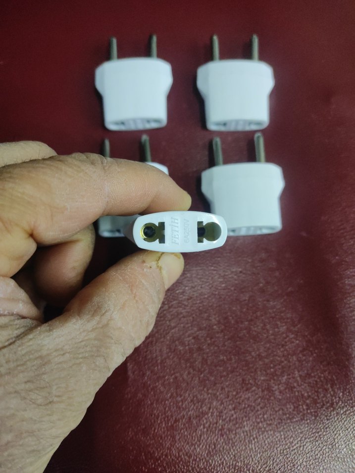 İki uçlu prizlere uygun beyaz telefon şarj adaptörleri. Kompakt ve taşınabilir.
