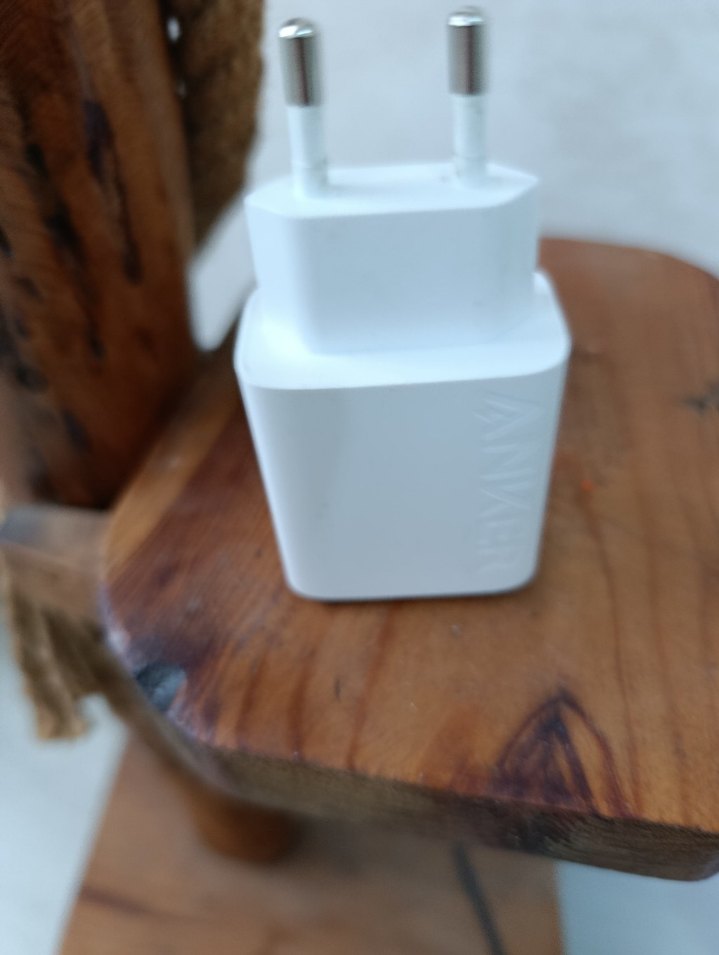 İki pinli beyaz telefon şarj adaptörü, kompakt ve hafif tasarıma sahiptir.