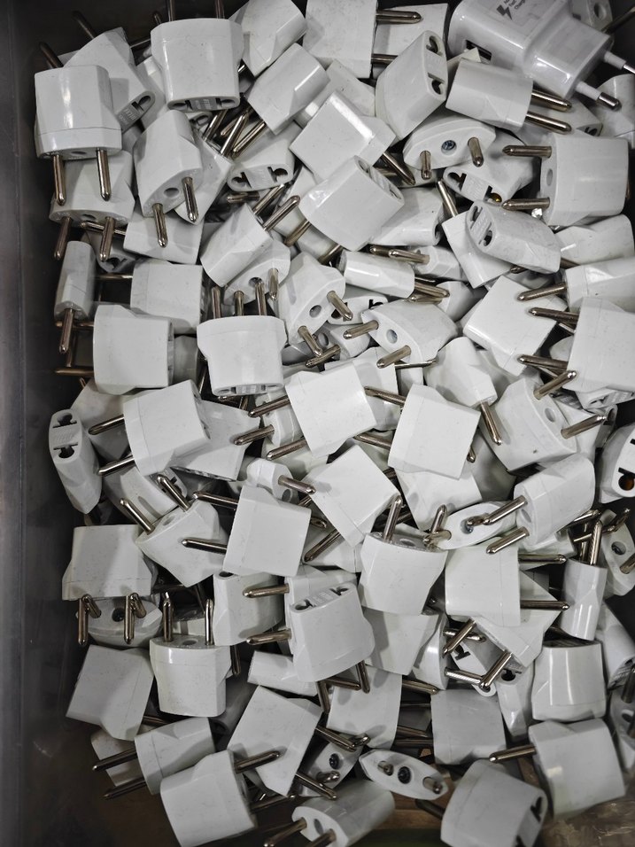 Metal uçlu beyaz ve gri telefon şarj adaptörleri, cihazları şarj etmek için kompakt tasarıma sahiptir. ⚡