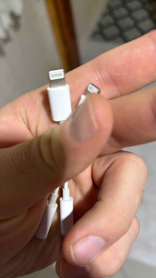 1 tanesi Orjinal Apple Ürünü, 1 tanesi Birebir ithal ürün muadili Uyumlu cihazları bağlayıp şarj etmek için beyaz, açık tonda telefon şarj kablosu. ⚡