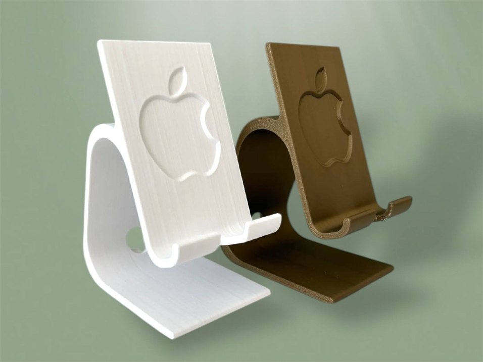 Kabartmalı Apple logo detaylı beyaz telefon standı, cihazınızı güvenle tutar. Düzgün yüzeyli, minimal tasarımda.