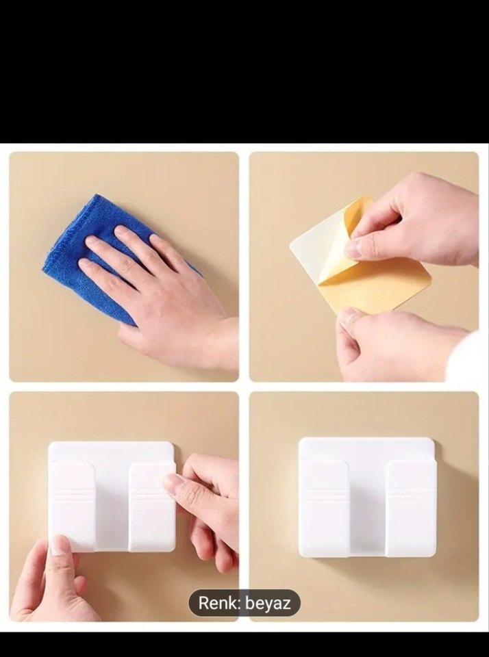 Yapışkanlı beyaz telefon tutucu, temiz yüzeylere kolayca monte edilir. Telefonunuzu sağlam şekilde tutar. Basit ve kullanışlı tasarım.