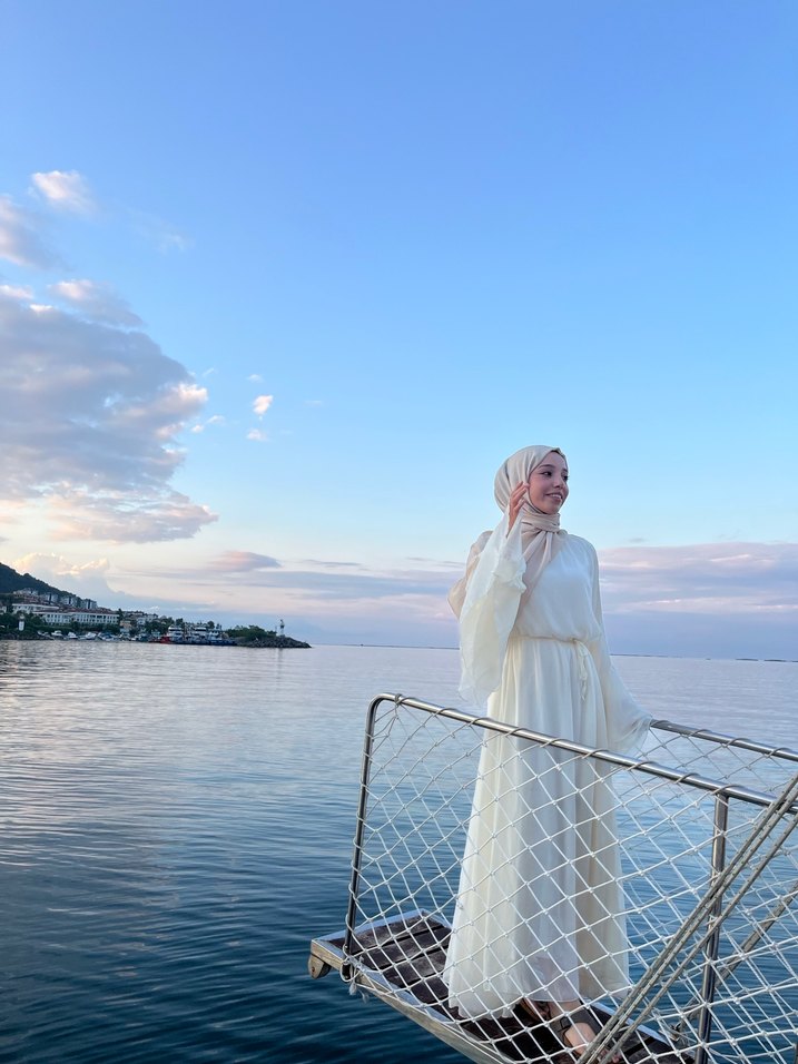Şifon krem elbise içine astarla giydim bir kez giyildi kuşağı var modaaksa marka