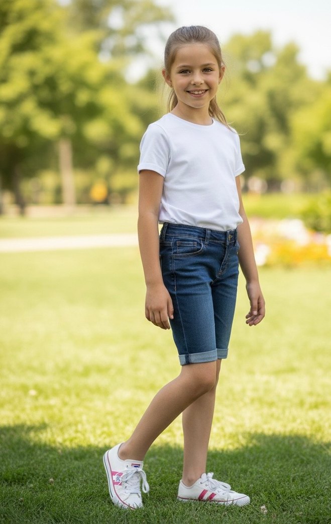 Beyaz tie-dye desenli, regular fit kız kot şort, rahat ve şık sokak stili sunar.