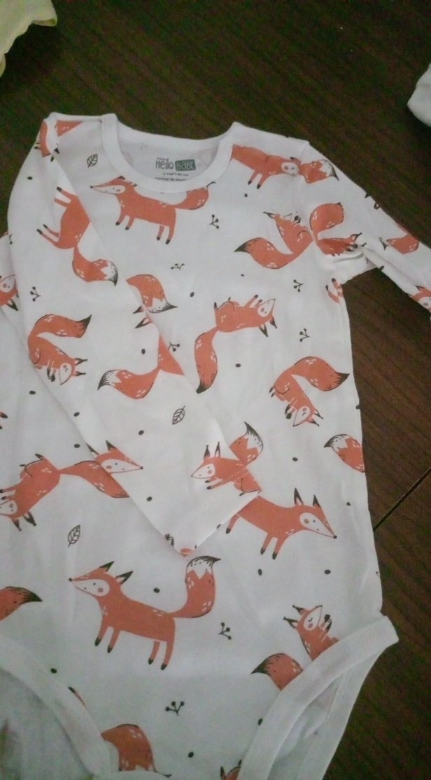 Yumuşak kumaştan yapılmış, beyaz zemin üzerine tilki desenli çocuk atlet.