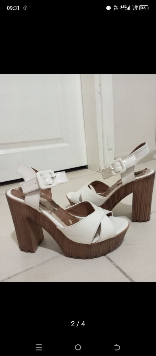 Beyaz Tokalı Ahşap Platform Topuklu Kadın Ayakkabı