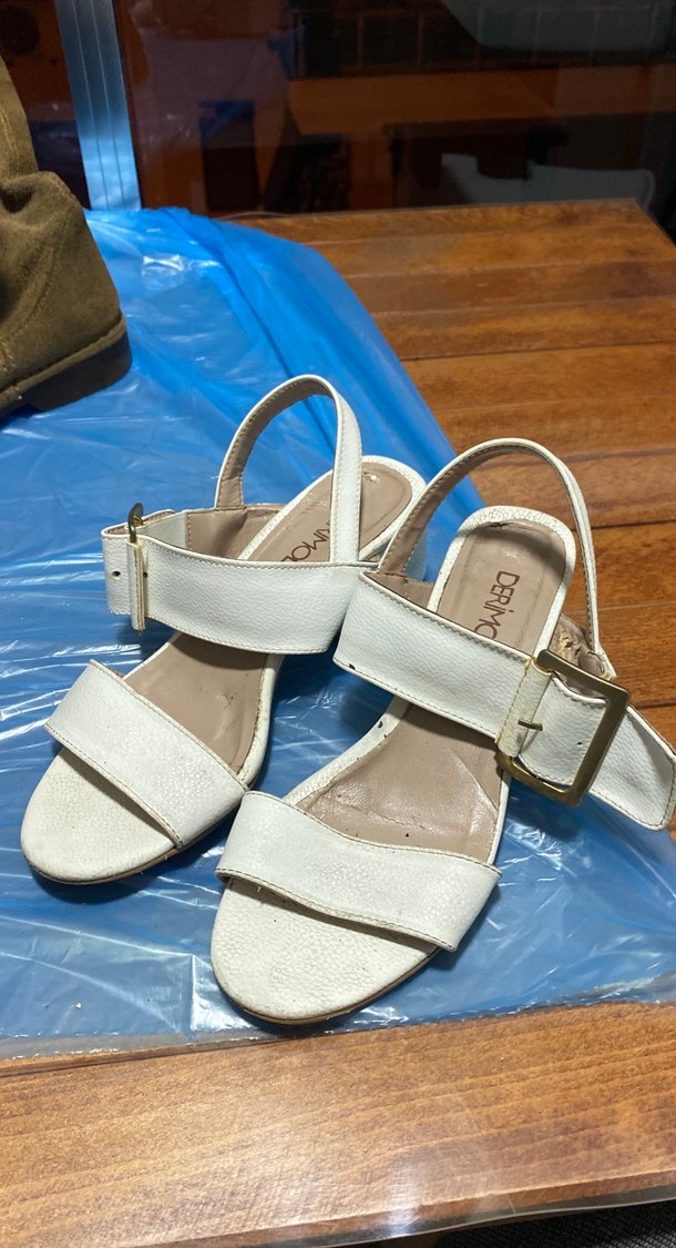 Beyaz Tokalı Blok Topuk Kadın Sandalet