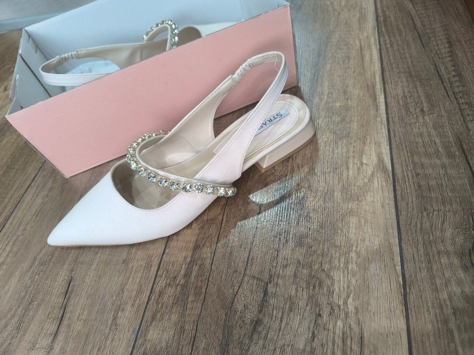 Beyaz tokalı ve taş detaylı blok topuklu kadın abiye ayakkabı, hiç giyilmedi. 38 e daha iyi olur sanki