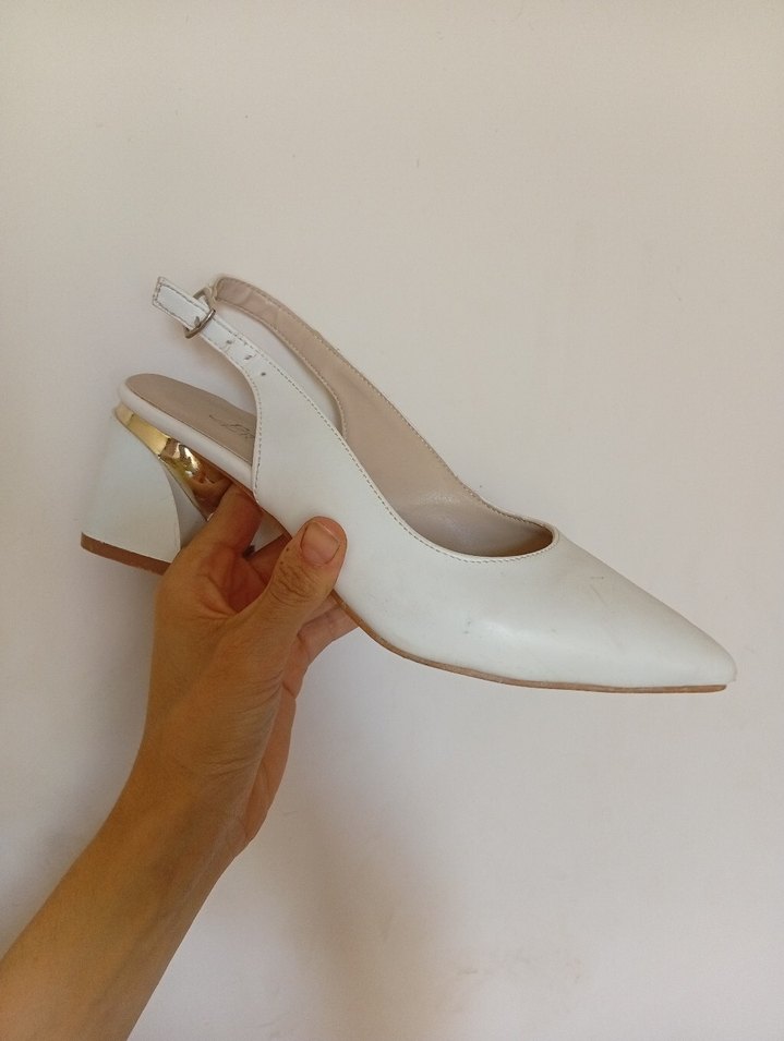Beyaz Tokalı Blok Topuklu Kadın Ayakkabı