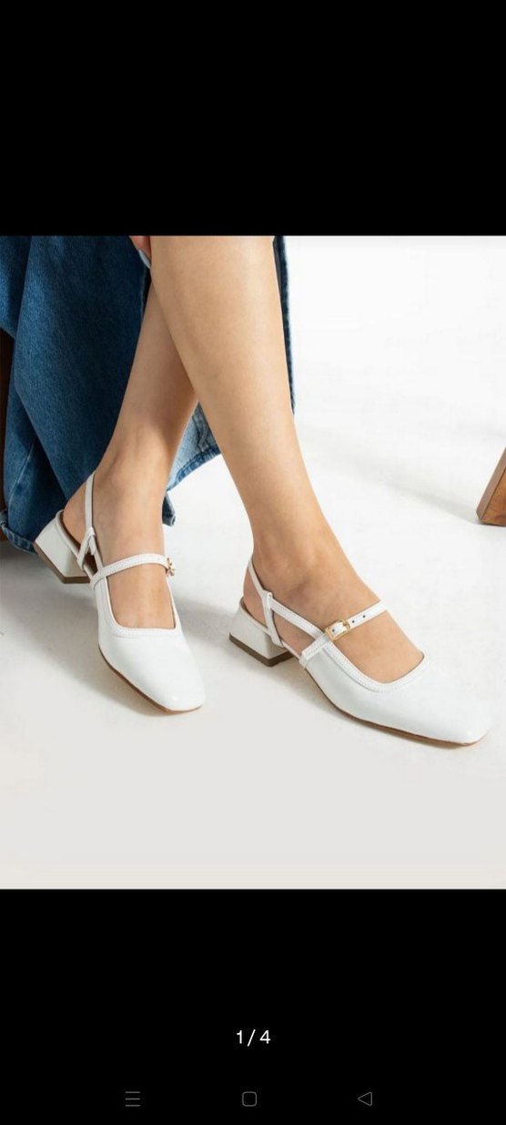 Beyaz Tokalı Blok Topuklu Kadın Babet