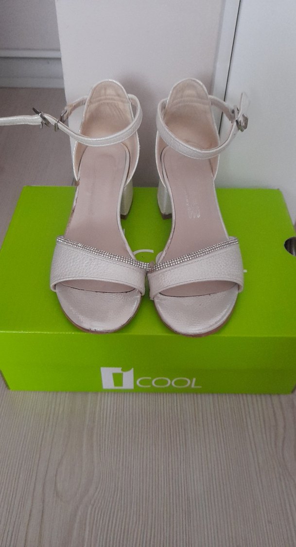 Beyaz, tokalı bilekten bantlı, baskılı detaylı kadın topuklu abiye ayakkabı. Yumuşak kauçuk malzemeden yapılmıştır. Düğün ve çağdaş tarzlar için uygundur. İkiz kızlarım olduğu icin elimde iki takım var ikisininbirlikte küçük kusurları var ayri ayrıca tek de alabilirsiniz.