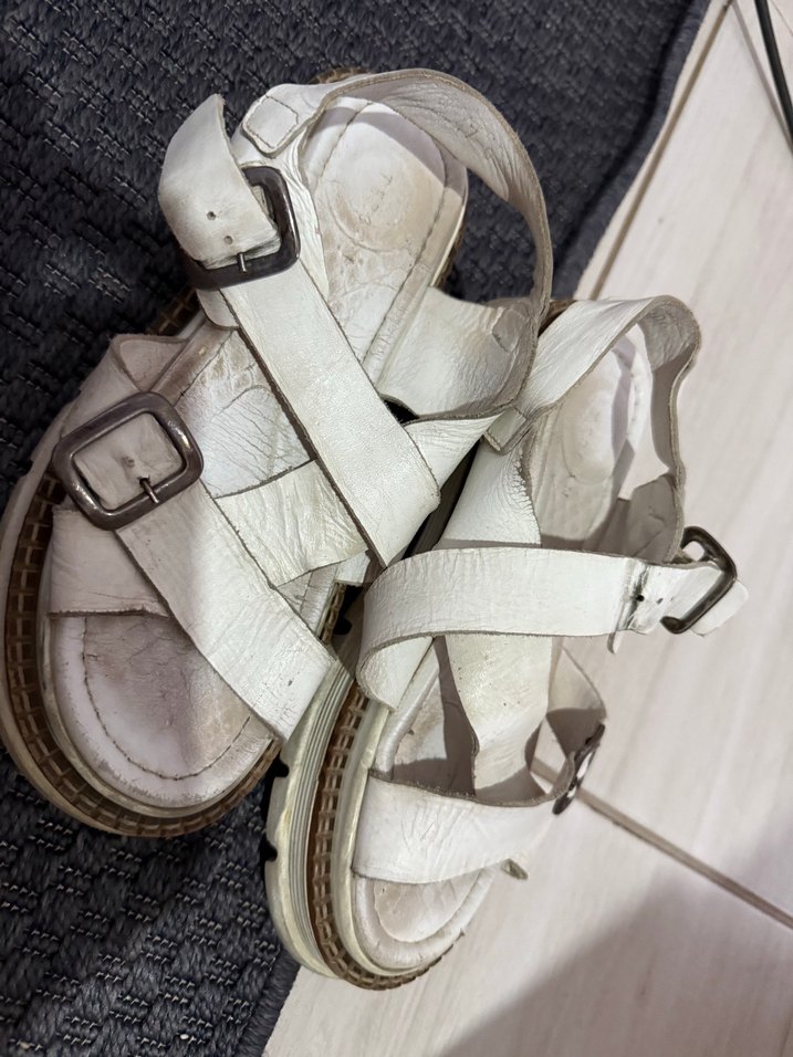 Beyaz Tokalı Dolgu Topuklu Kadın Sandalet hakiki deri tergan