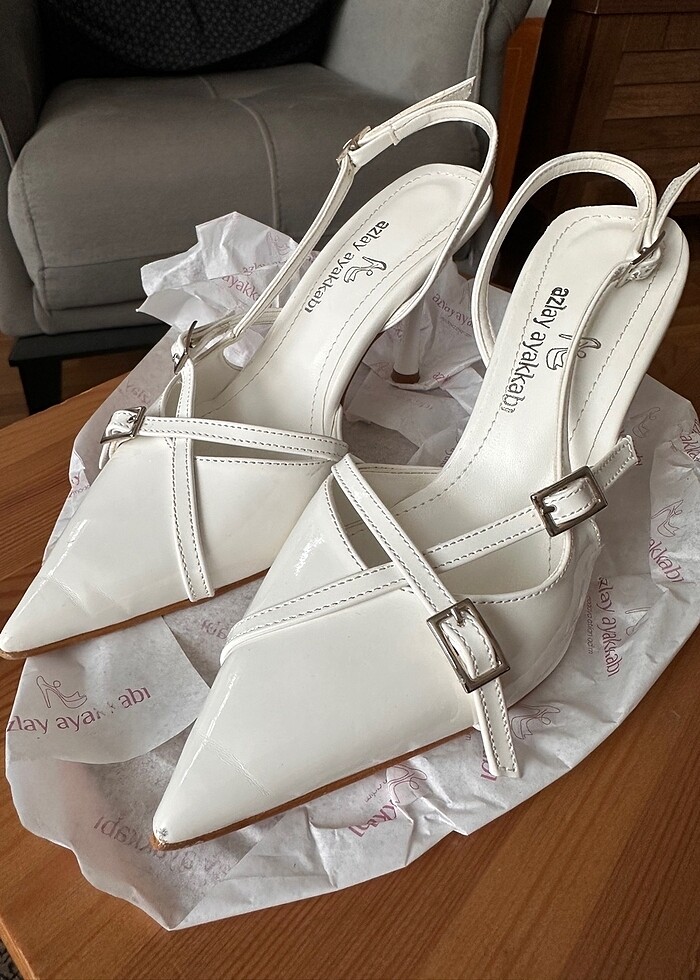 Çok çok güzel duruyor, ayaklarım taraklı olduğu için biraz sıktı bu yüzden istemeyerek satıyorum. Yürümesi çok rahat çünkü topuklar düz ve yere sağlam basıyor. Tam kalıp , 1 kez birkaç saat kullanıldı. Tokalarında 1’er fazladan delik açıldı. Temizdir. Detayları fotoğraflardan inceleyebilirsiniz. Bir topukta ve birinin önünde minik defo var fotoğraflara ekledim, anlaşılmıyor giyince