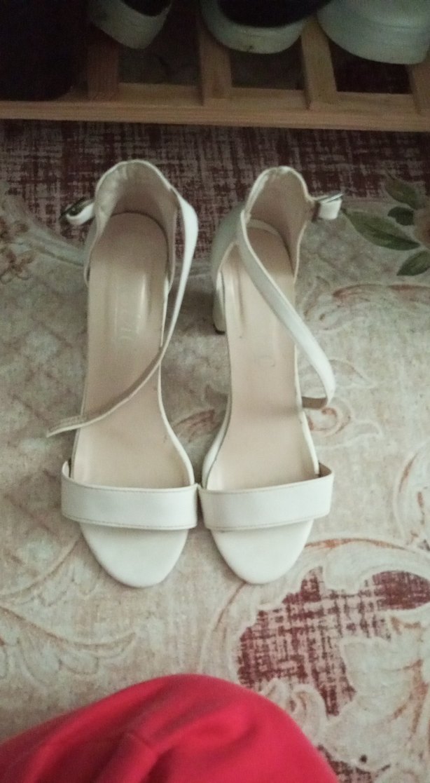 Tokalı bantlı, beyaz ince topuklu ve minimalist tasarımlı, rahat kauçuk tabanlı kadın abiye ayakkabısı.