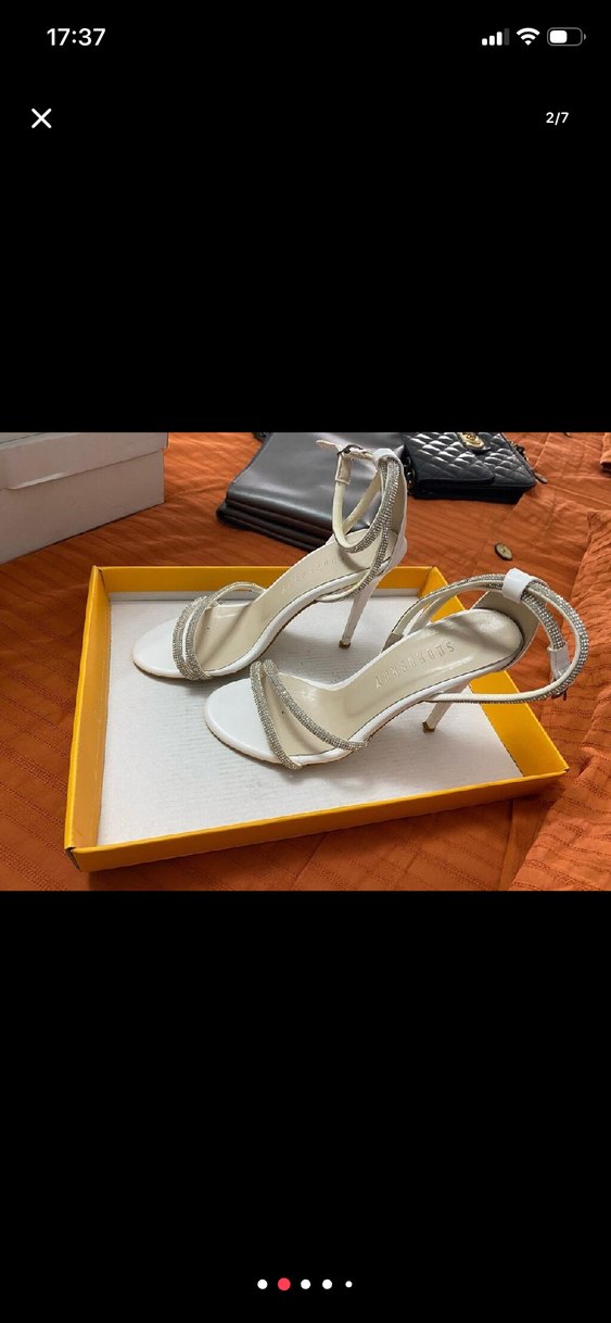 Beyaz tokalı ince topuklu ayakkabılar, hafif yılan desenli ve kauçuk malzemeden, düğün ve çağdaş tarzlar için uygundur.