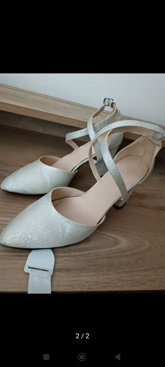 Beyaz tokalı ince topuklu kadın abiye ayakkabı, düz kauçuk malzemeden, minimalist ve çağdaş tasarıma sahip. Düğünler için uygun.
