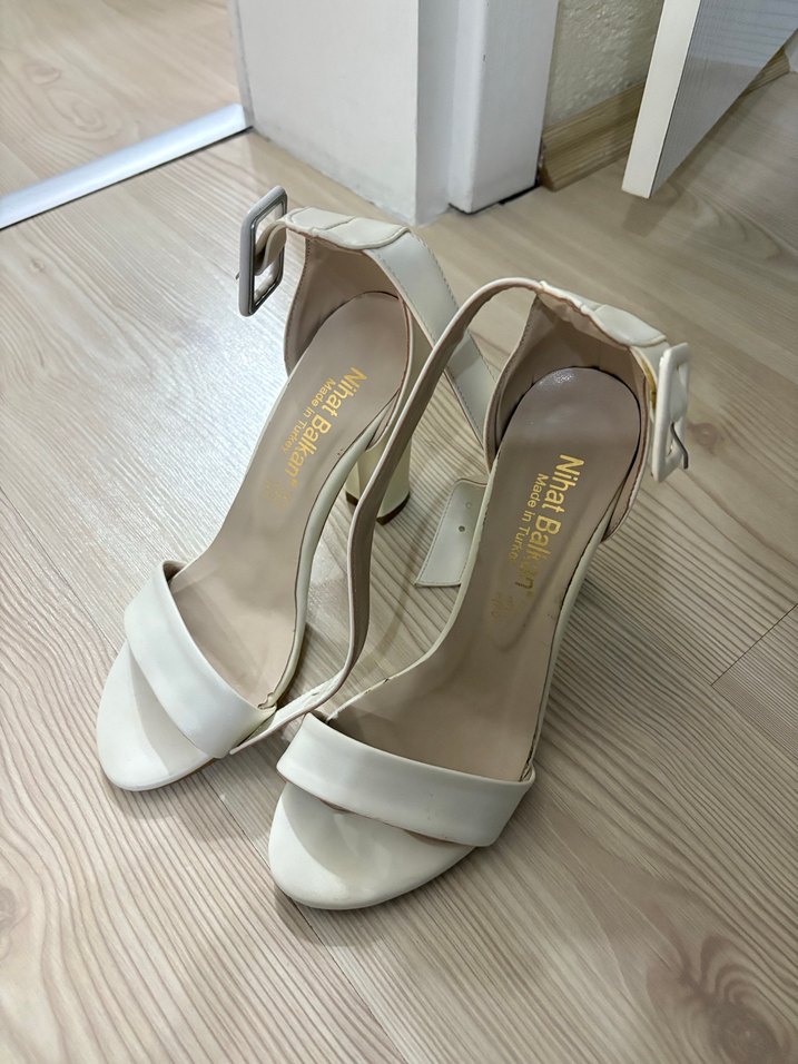Beyaz Tokalı İnce Topuklu Kadın Ayakkabı