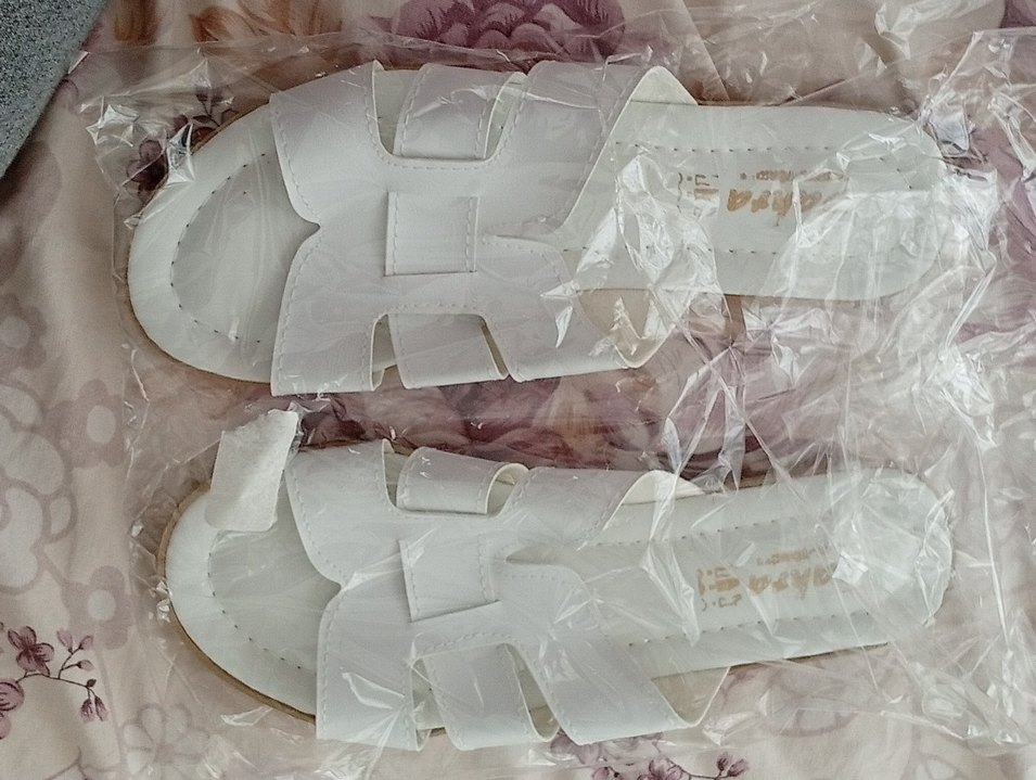 Tokalı beyaz kadın terlik, desen içermeyen şık tasarımıyla günlük kullanıma