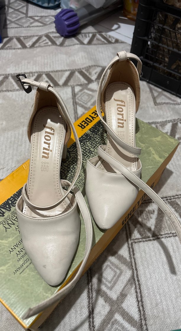 Beyaz Tokalı Kadın Topuklu Ayakkabı