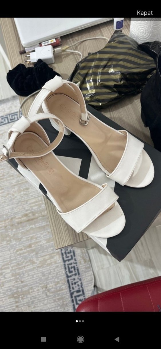 Beyaz Tokalı Kadın Topuklu Sandalet