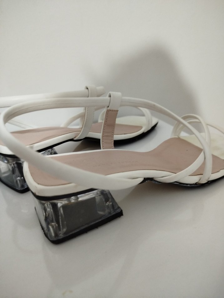 Beyaz Tokalı Kadın Topuklu Sandalet