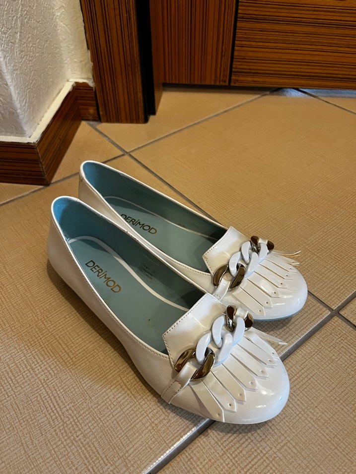 Beyaz Tokalı Kız Çocuk Loafer Ayakkabı
