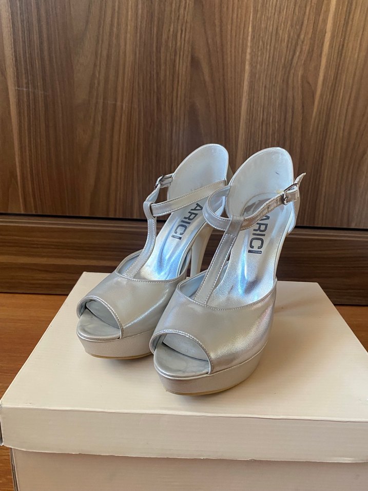 Beyaz tokalı platform topuklu ayakkabılar, çağdaş desenli ve minimalist tarzda, düğünler için uygundur. Kauçuk malzemeden üretilmiştir.