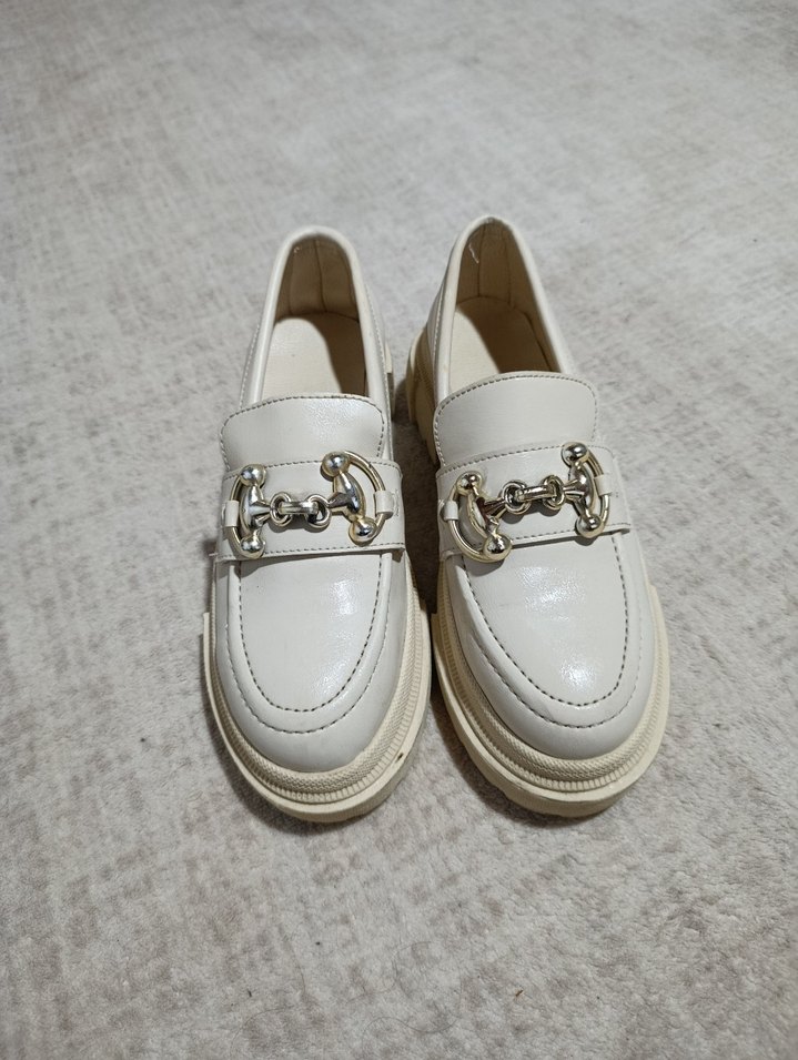 Beyaz Tokalı Platform Topuklu Kadın Loafer
