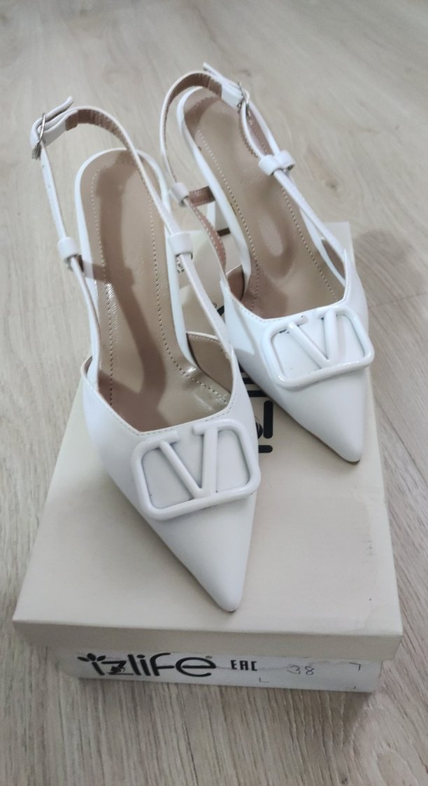 Beyaz Tokalı Stiletto Topuklu Kadın Ayakkabı