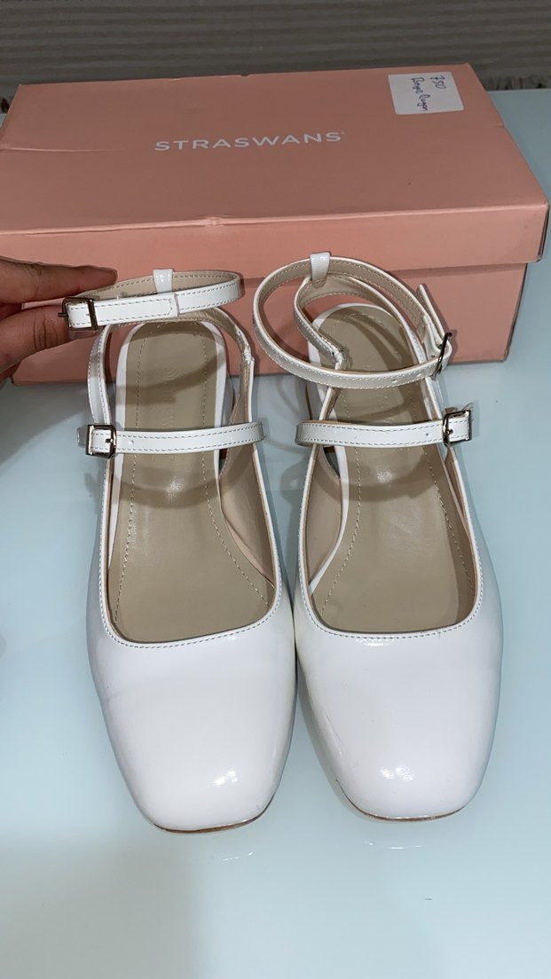 Beyaz renkte, çift tokalı askılı ve ince topuklu bu babetler, STRASWANS imzasıyla çağdaş Paris tarzını yansıtıyor. Günlük kullanıma uygun.