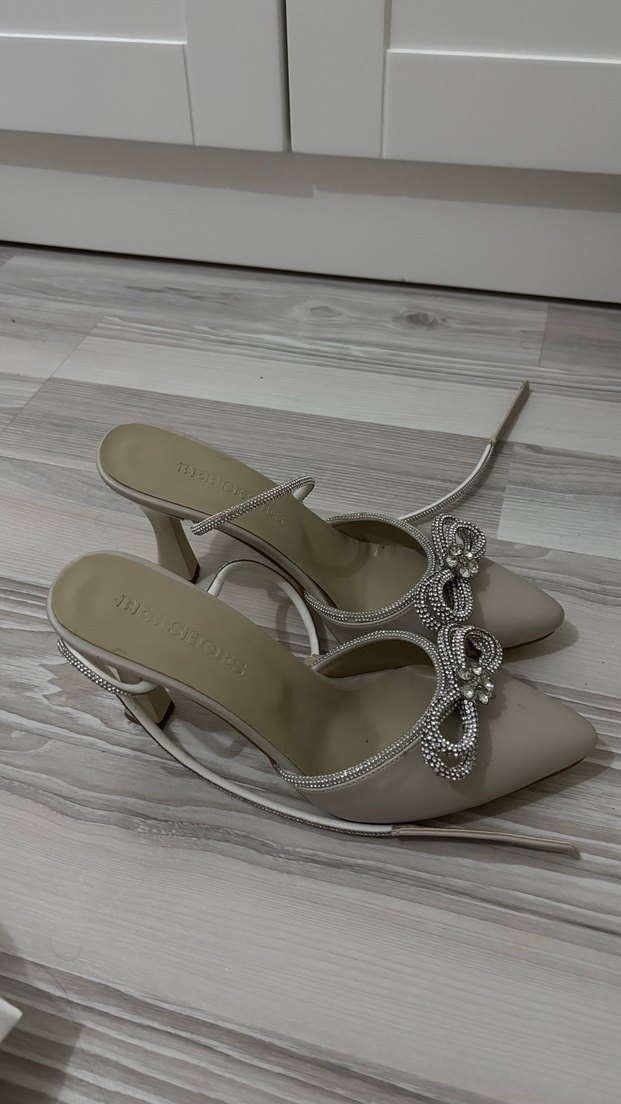 Modern klasik beyaz abiye ayakkabılar, stiletto topuk ve tokalı tasarıma sahiptir. Yılan deseni ve taş süslemeleriyle düğünler için uygundur. Tabanı dayanıklı kauçuktandır.