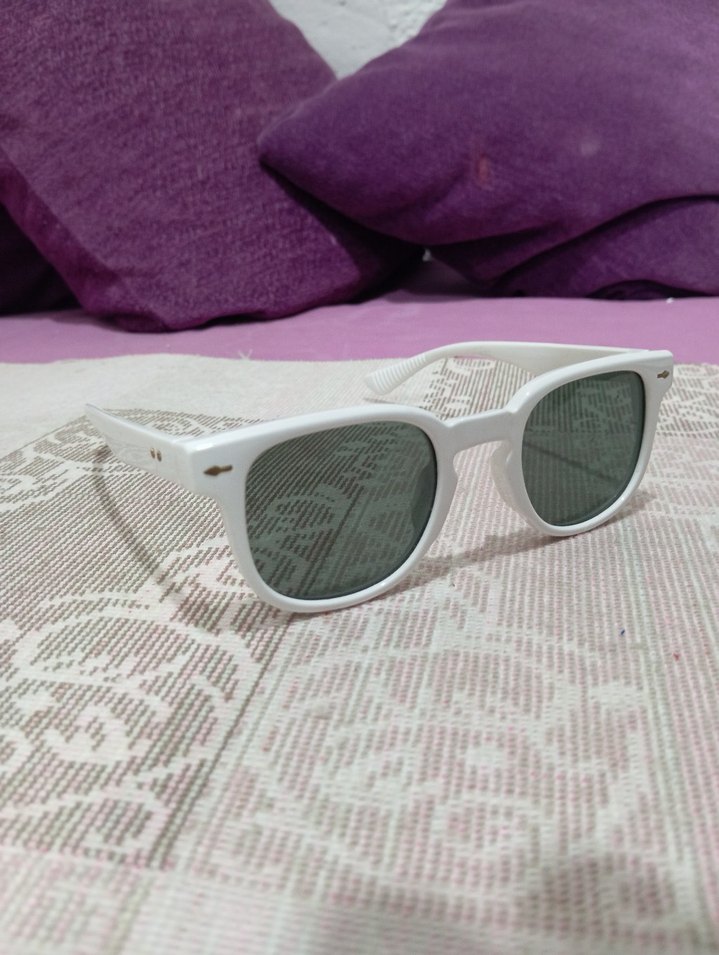 Pastel tonlarda beyaz transparan çerçeveli, retro tarzda kadın güneş gözlüğü. Parisli karşı kültür havası verir, bohem ve hippie tarzına uygundur.