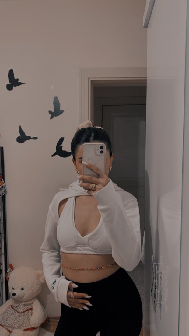 Pamuk kumaştan, beyaz transparan detaylı, fit kesim crop top. Kusuru yoktur
