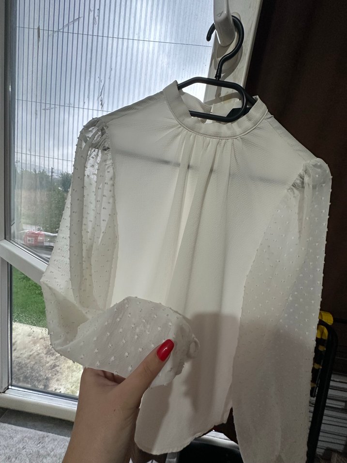 Beyaz Transparan Uzun Kollu Keten Bluz