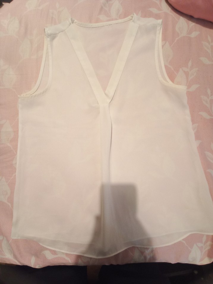 Beyaz Transparan V Yaka Kolsuz Bluz
