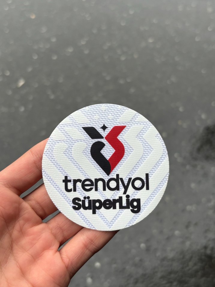 Trendyol SüperLig logosu olan beyaz renkli, renkli erkek rozet, streetwear ve athleisure tarzına uygun.