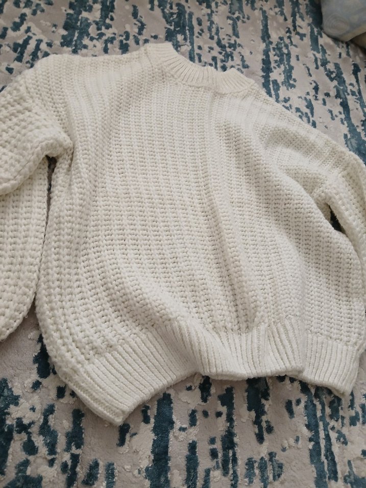 Beyaz renkte, uzun kollu ve yuvarlak yaka triko kazak. Rahat kesimi ve yumuşak dokusuyla günlük kullanıma uygundur.