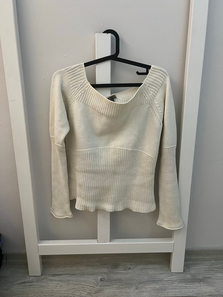 Beyaz Triko Uzun Kollu Kadın Kazak