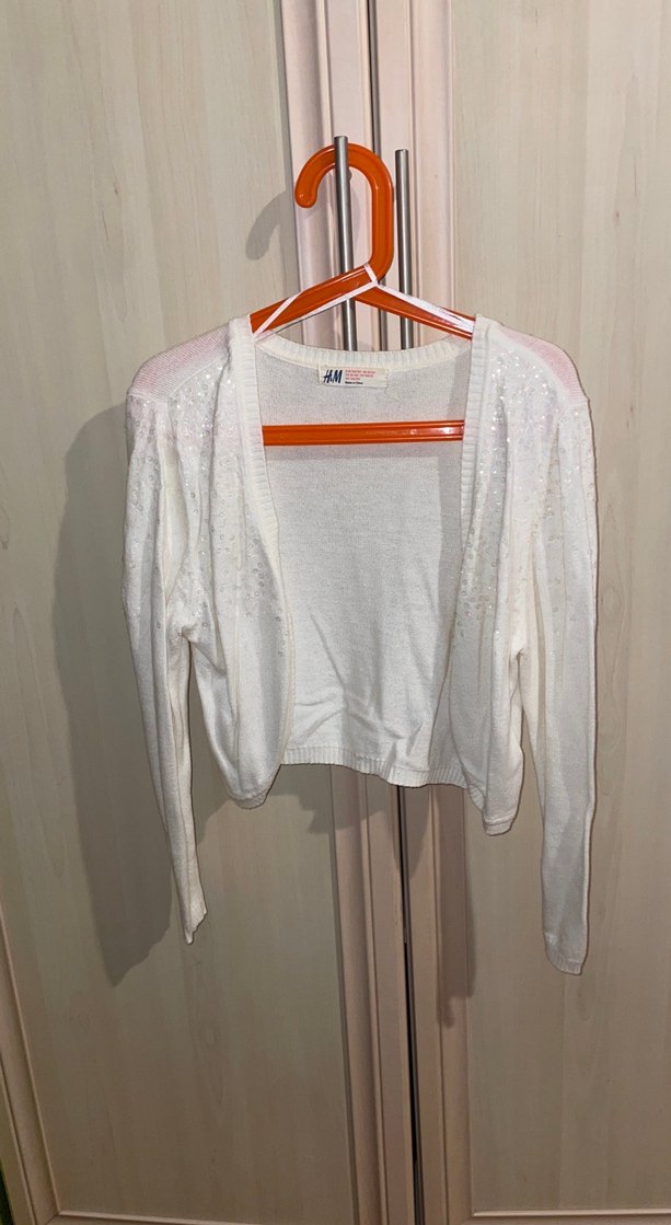 Yumuşak pamuktan üretilmiş, uzun kollu, V yaka beyaz triko bolero. Trendy casual ve street wear tarzına uygundur. ✨