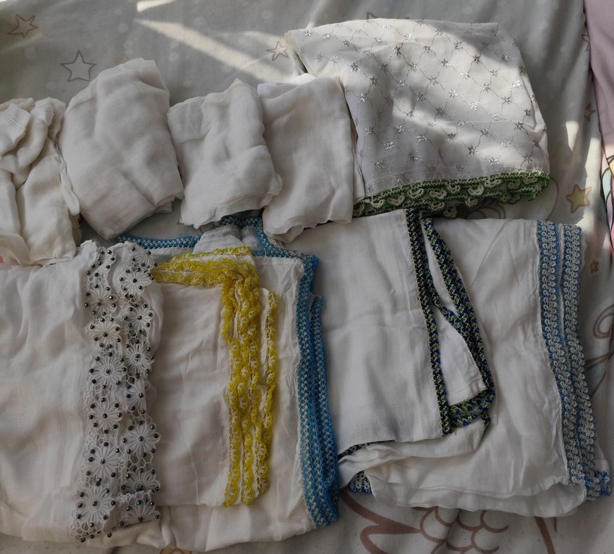 Beyaz tülbent. Sandık sararması var biraz hiç kullanilmadilar.