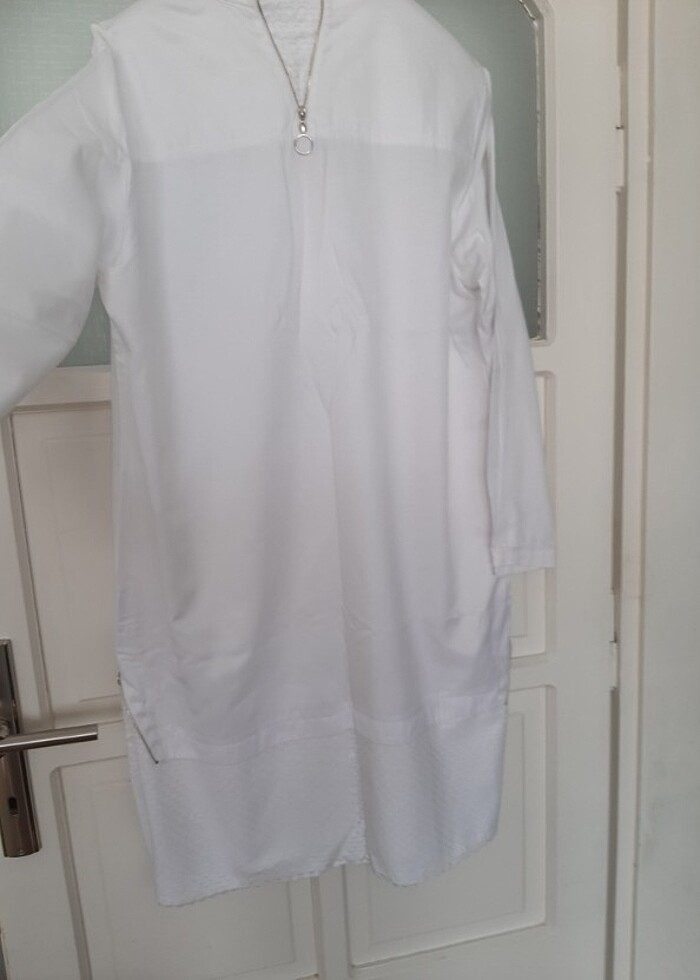 Baqa marka 42 beden Beyaz renk tunik. Fermuar detayları var Uzunluğu 100 cm