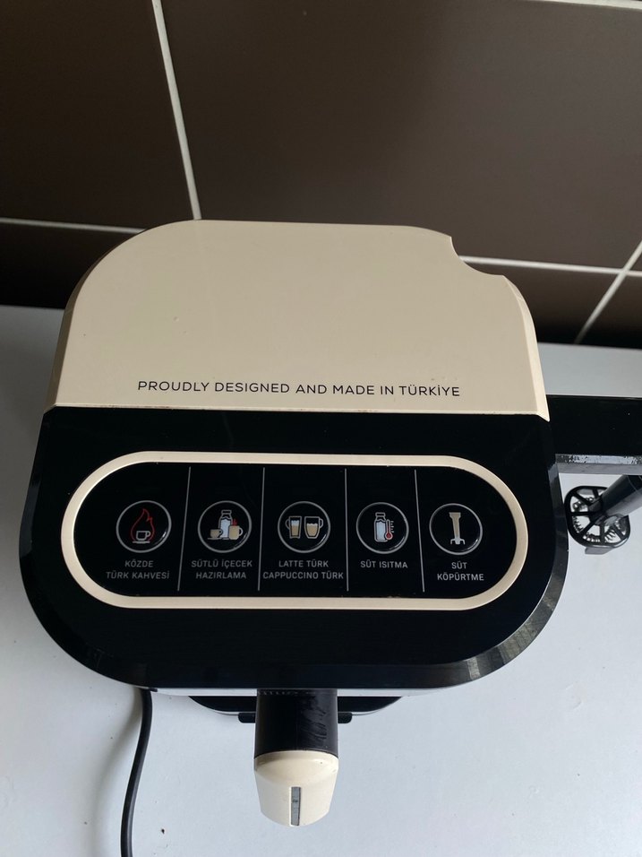 Türkiye'de tasarlanıp üretilmiş beyaz kahve makinesi. Türk kahvesi, sütlü içecek, latte, cappuccino, süt ısıtma ve köpürtme özelliklerine sahiptir. ☕Az kullanılmıs elden alımda düz 3000 olur