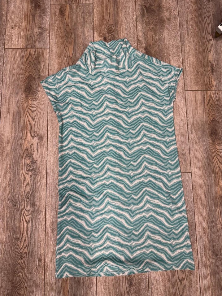 ISLE- Amerika Üretim / Orijinal Parça Yüksek yakalı, kolsuz, pile detaylı, pastel turkuaz zebra desenli, yumuşak kumaş elbise. Günlük kullanım için uygundur. Sıfır ürün, etiketli ✨