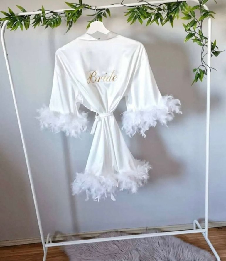 Beyaz Tüy Detaylı Kadın Sabahlık