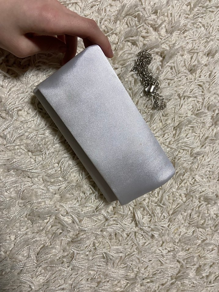 Modern klasik tarzda, tüylü detaylı beyaz ve gri tonlarında kadın abiye portföy çanta. Düğünler için uygun şık tasarım. ✨