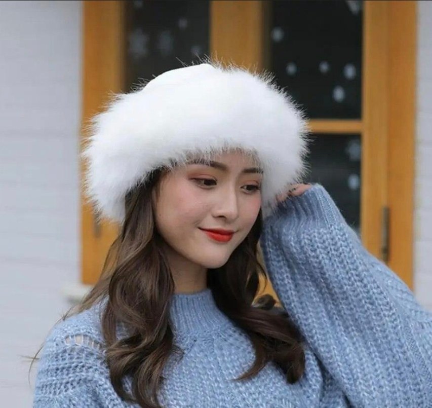 Beyaz Tüylü Kadın şapkası
