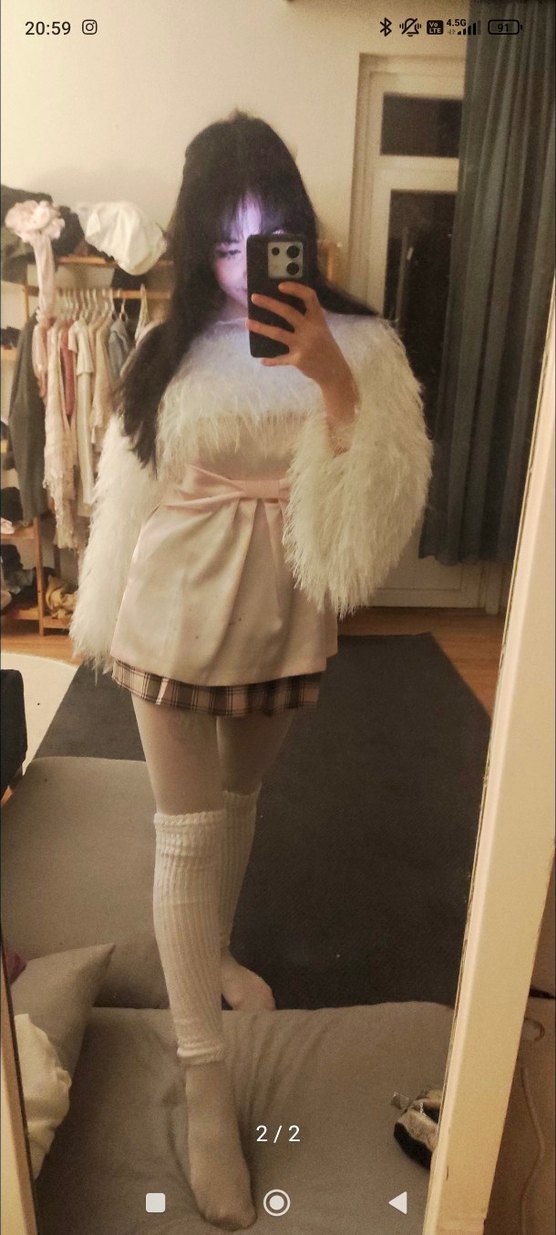 Beyaz tüylü detaylara sahip, uzun kollu ve straplez yakalı, yumuşak dokulu midi boy fitted bolero. Rahat ve normcore tarzıyla günlük kullanıma uygun. ❄️