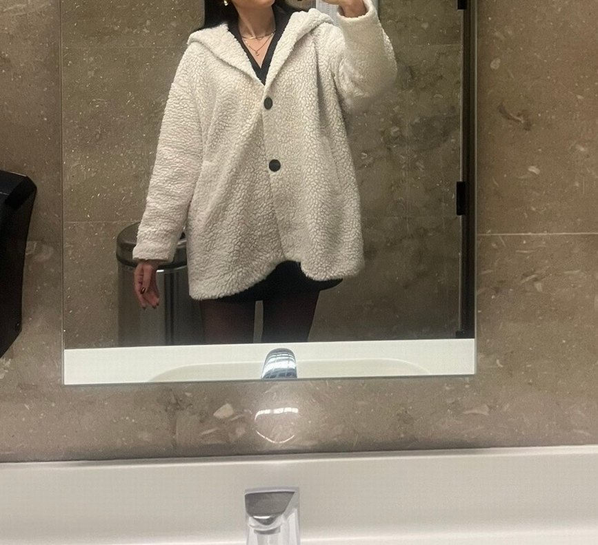 Beyaz midi uzunlukta, bol kesim kadın kaban. Yakasında tüylü detaylar ve uzun kollu, yumuşak ve sıcak kumaştan üretilmiş. Rahat ve şık bir görünüm sunar.