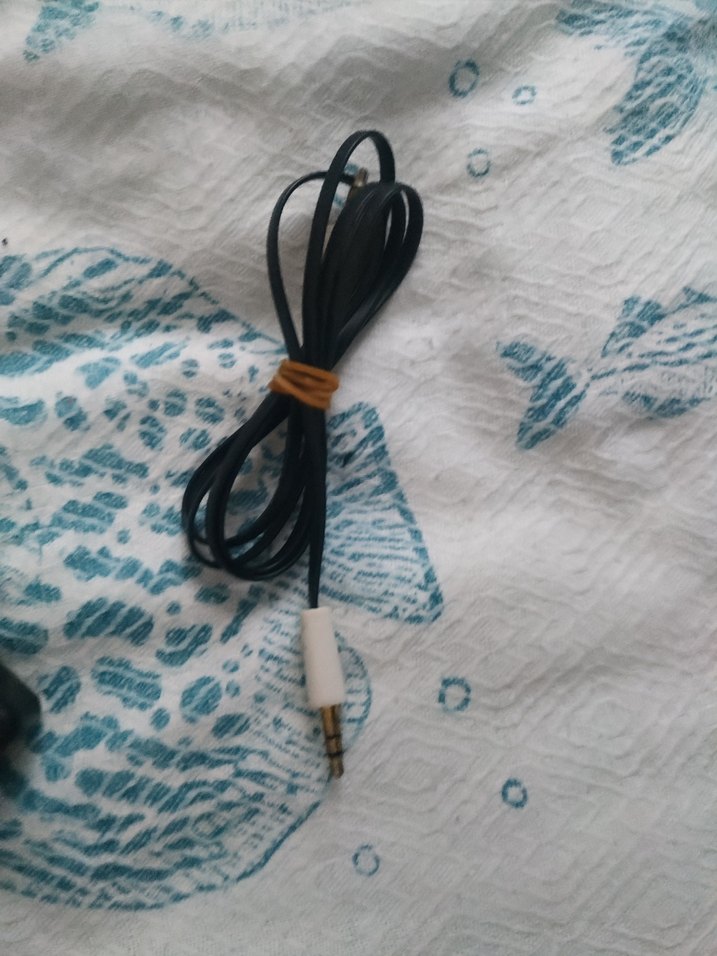 Beyaz konnektörlü siyah 3.5mm ses kablosu, farklı cihazlarda kullanılabilir, esnek yapıya sahiptir.