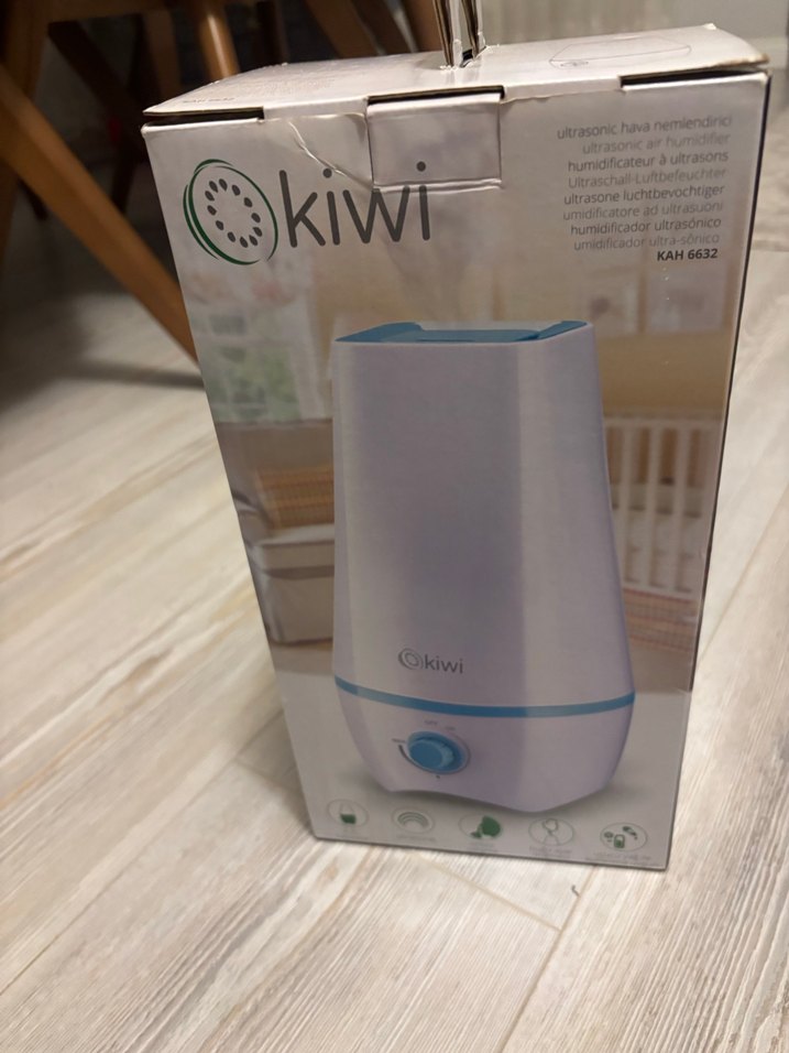 Kiwi marka beyaz ultrasonik hava nemlendirici, kolay kullanımlı kontrol düğmesi ile iç mekanda nem seviyesini korur.